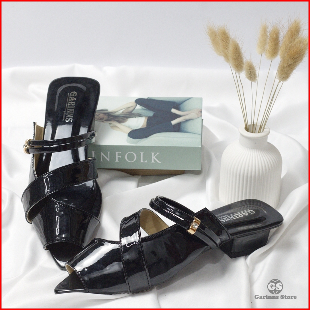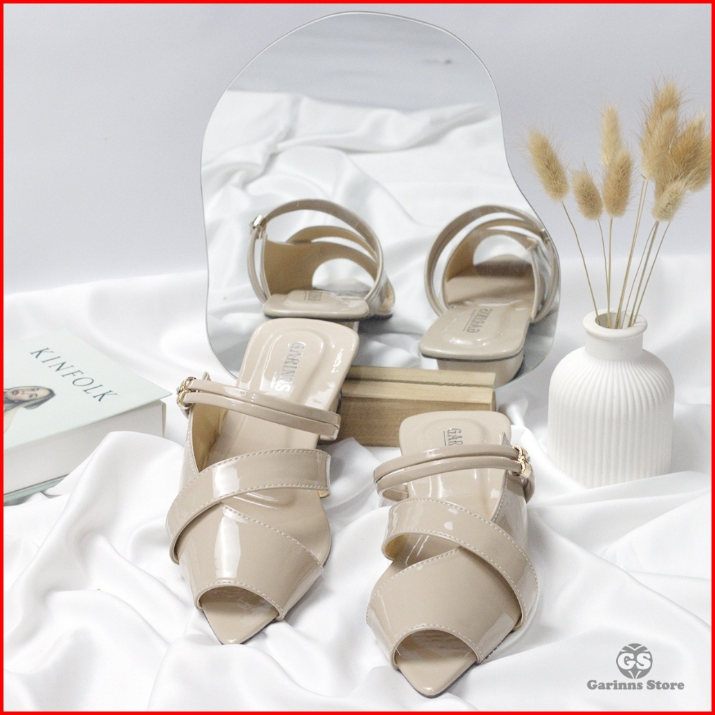 Sandal Sepatu Mules Tali Wanita Trend Kekinian Hak 3cm Garinns