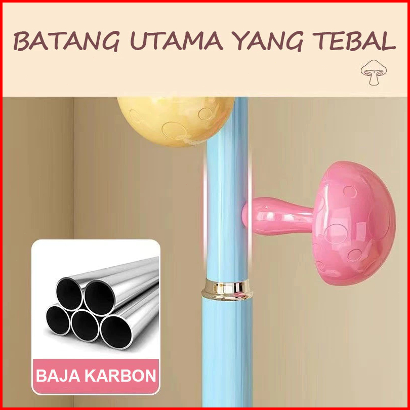 Gantungan Baju Mushroom 168cm Hanger Mantel Besi Sederhana Gantungan Berdiri Multifungsi Kamar Tidur Stand Hanger Anak-a