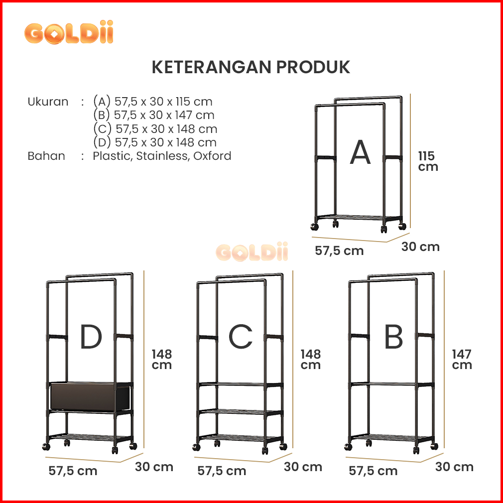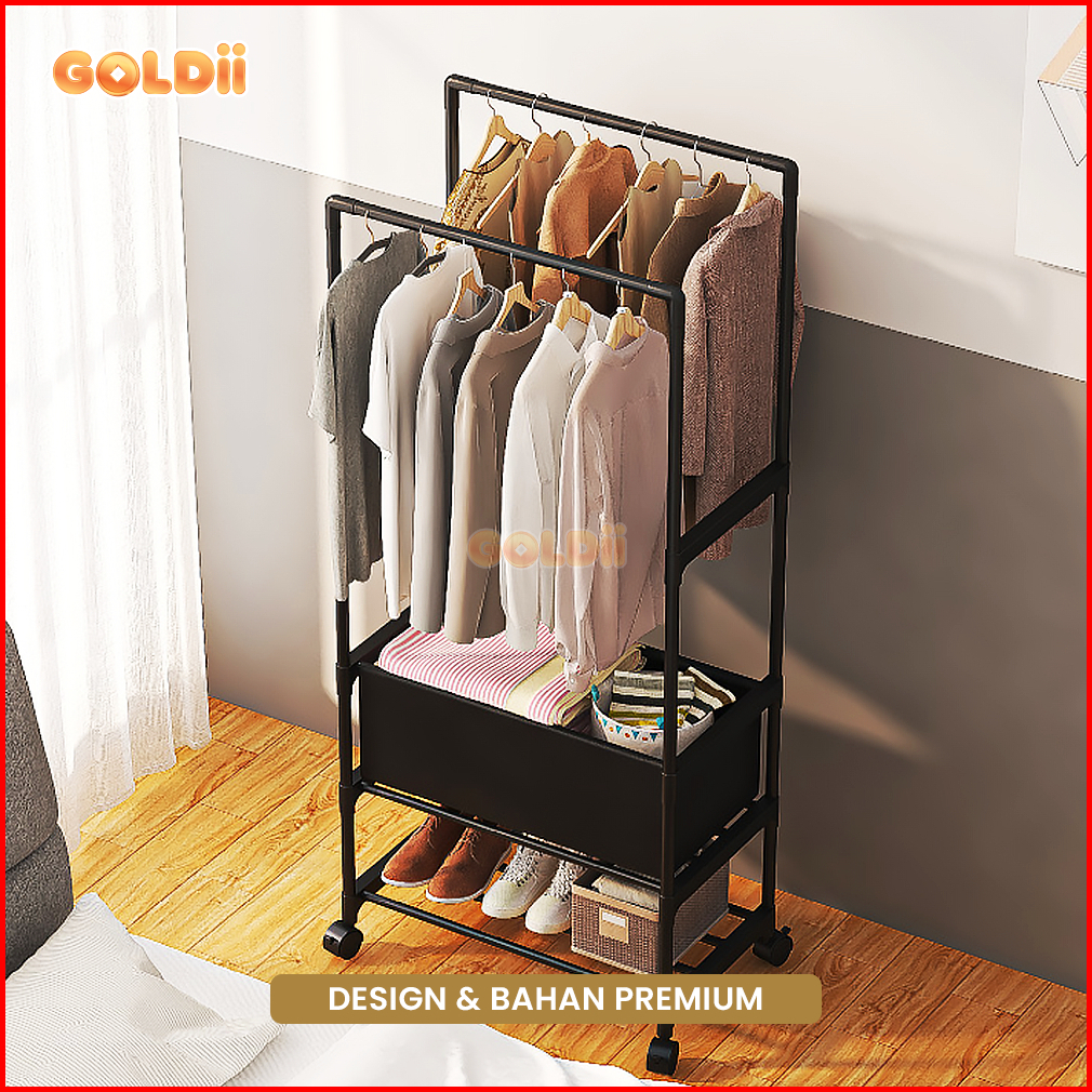 Goldii - Stand Hanger Pakaian Serbaguna Gantungan Baju Berdiri Jemuran Pakaian Estetik Kokoh