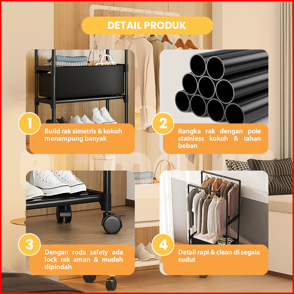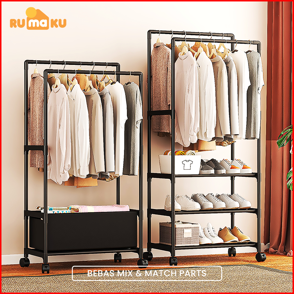 Rumaku Stand Hanger Gantungan Baju Berdiri Gawangan Baju Serbaguna Besi Berkualitas