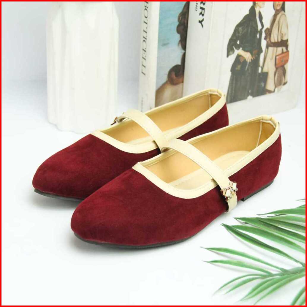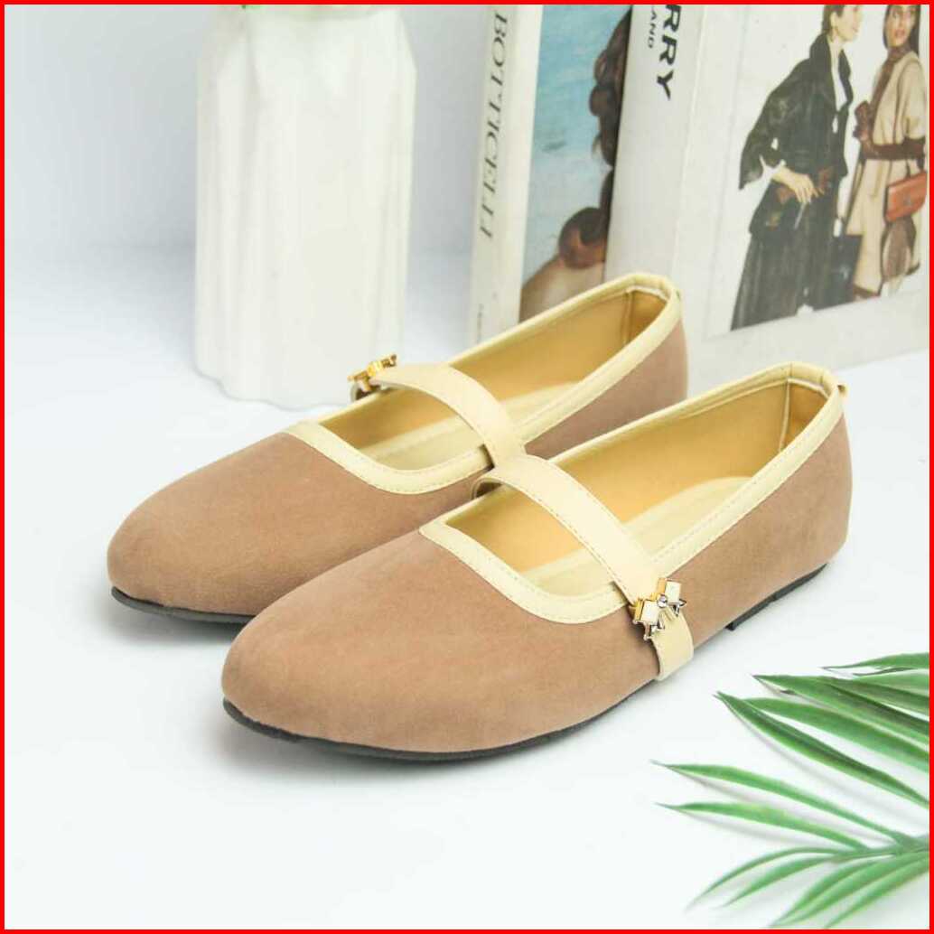 Vyona Sepatu Balet Motif Gesper Sepatu Flatshoes Wanita Casual