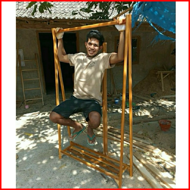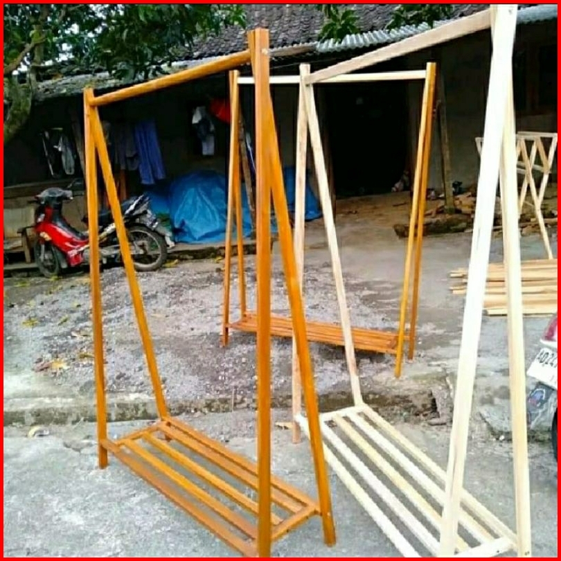 Stand Hanger Gantungan Baju Kayu Jati Asli Kuat Dan Kokoh