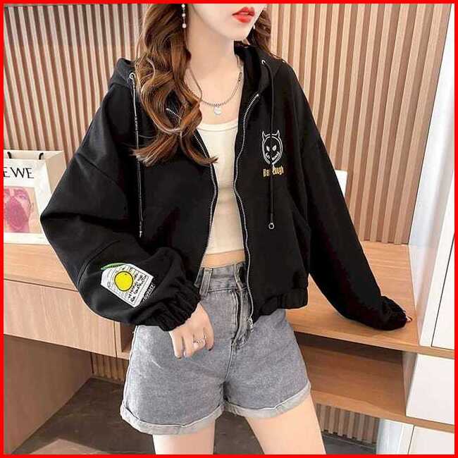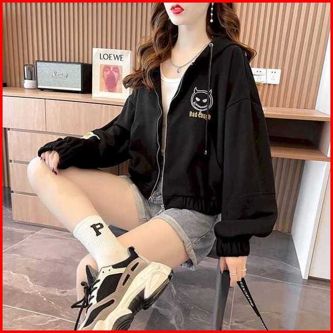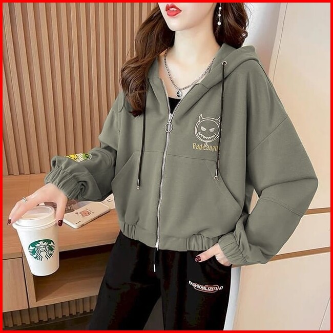 Jaket Croope Zipper Hoodie Wanita - Bad Laugh Hoodie Ziper Wanita Korean Style Crop