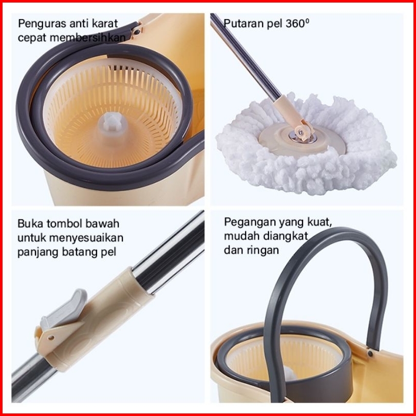 02 Alat Pel Putar Alat Pel Lantai Spin 360 Derjat Super Mop