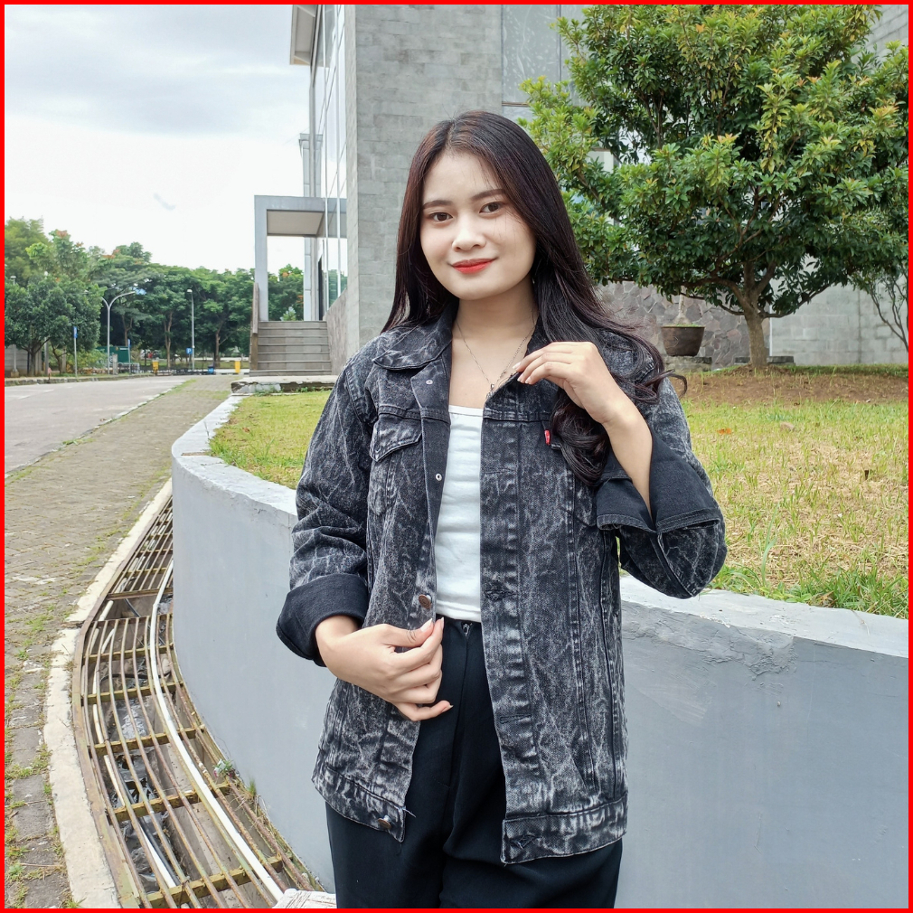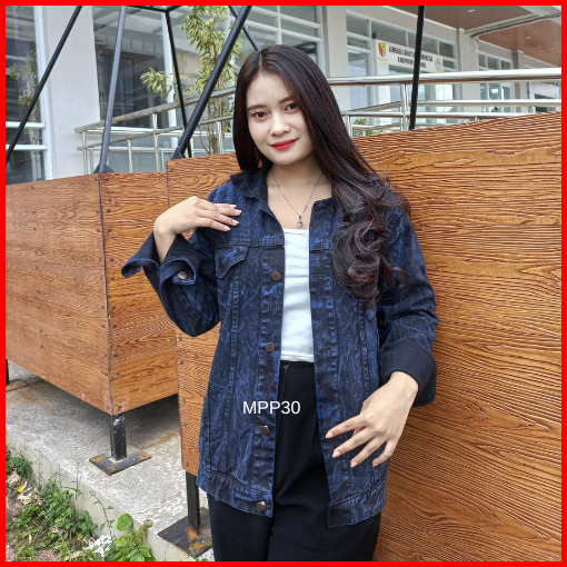 Jaket Jeans Denim Wanita M L Xl Xxl Xxxl Jumbo Jacket Sandwash Navy Cewek
