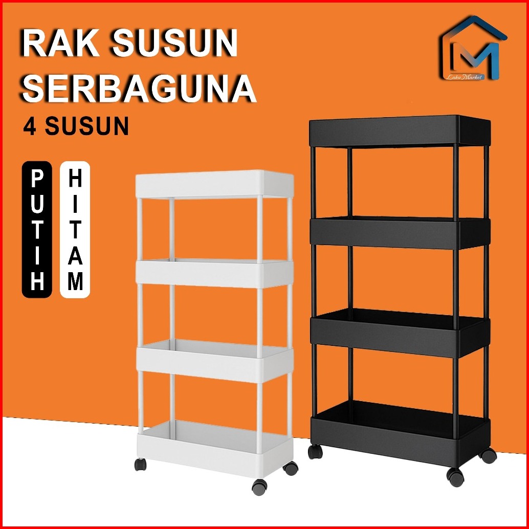 Lm Rak Troli 4 Susun Persegi Model Rak Plastik Tebal Serbaguna Dengan Roda