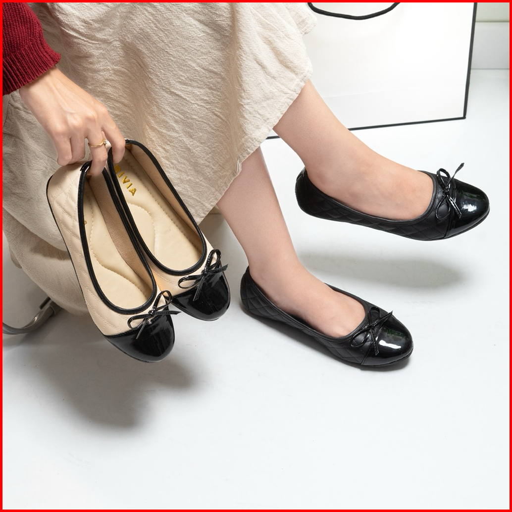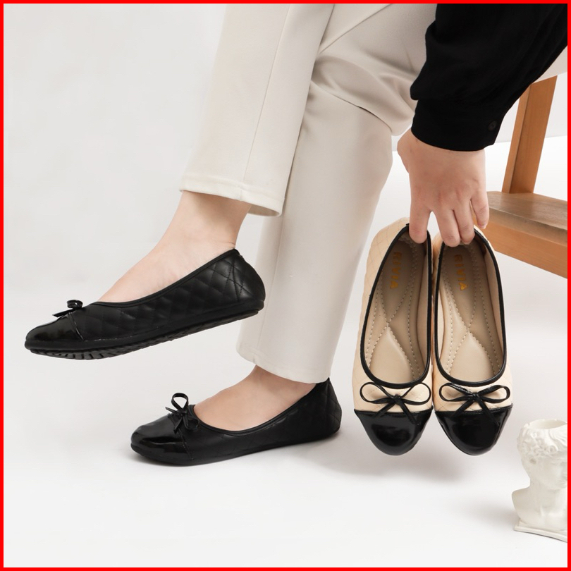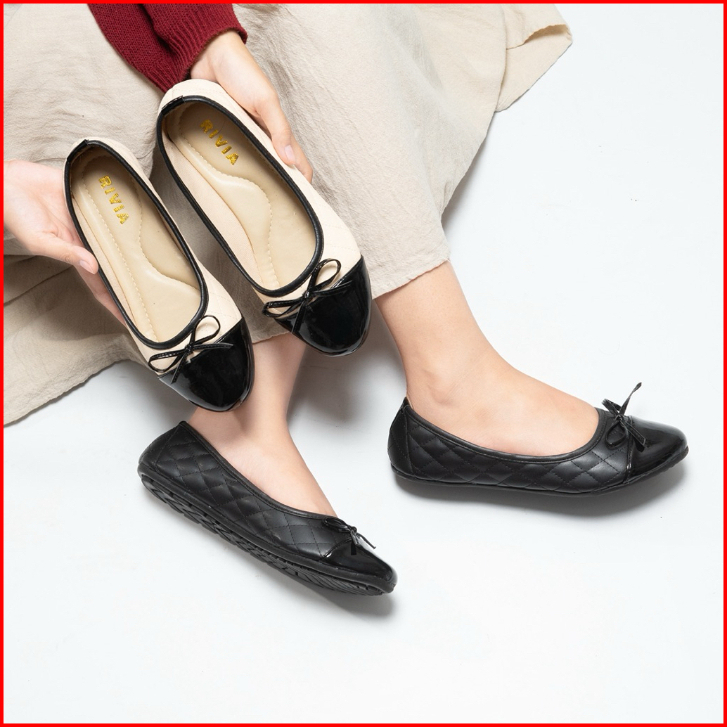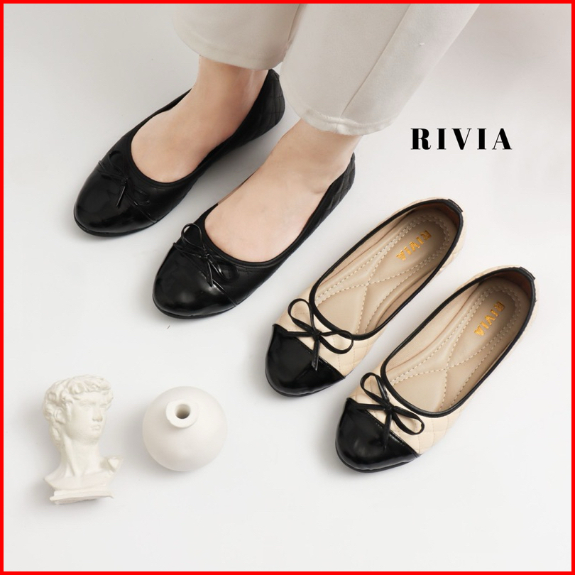 Rivia Sepatu Flatshoes Wanita Clara Bahan Cenel Pita Tali