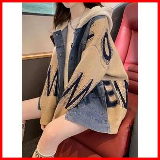 Jacket Denim Zigzag Oversize - Jacket Zipper Gaya Koreans - Patch Work
