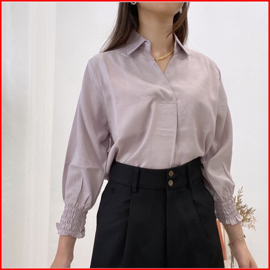 Girlfashionstory Original Takara Shakila Vneck Blouse Collar Atasan Wanita Kantor