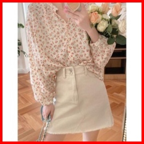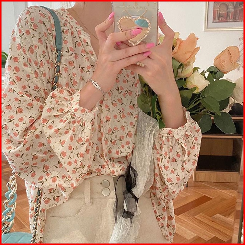 Girlfashionstory Original Sp Yejin Shakila Korean Flower Vintage Oversize Blouse