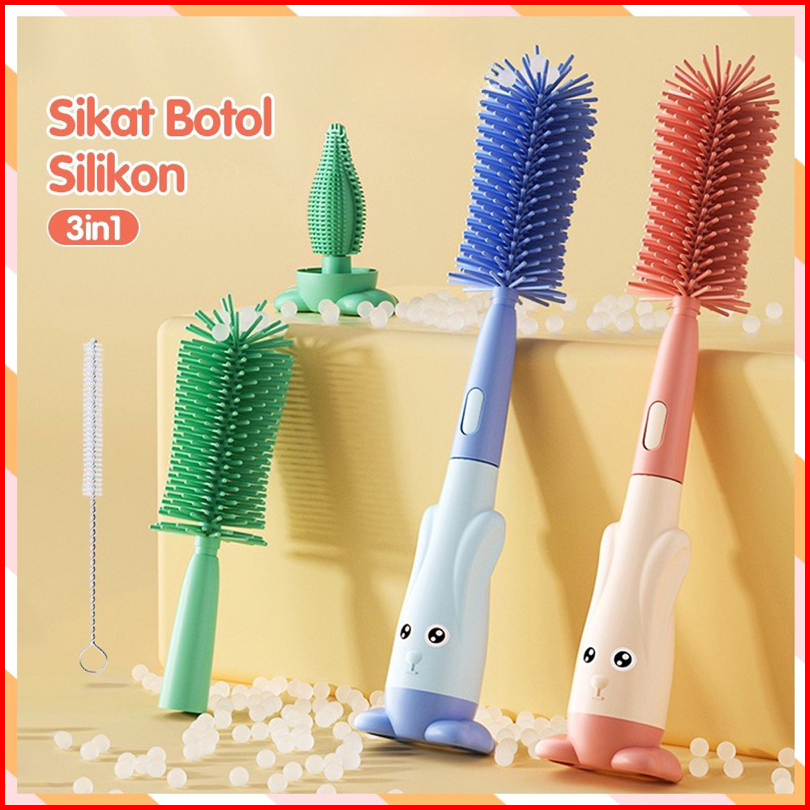 Sikat Botol Set 3in1 Sikat Cuci Botol Bayi Silikon Sikat Botol Dot Sedotan 3 In 1 Portable Silicone 3in1 Bottle Brush Pe