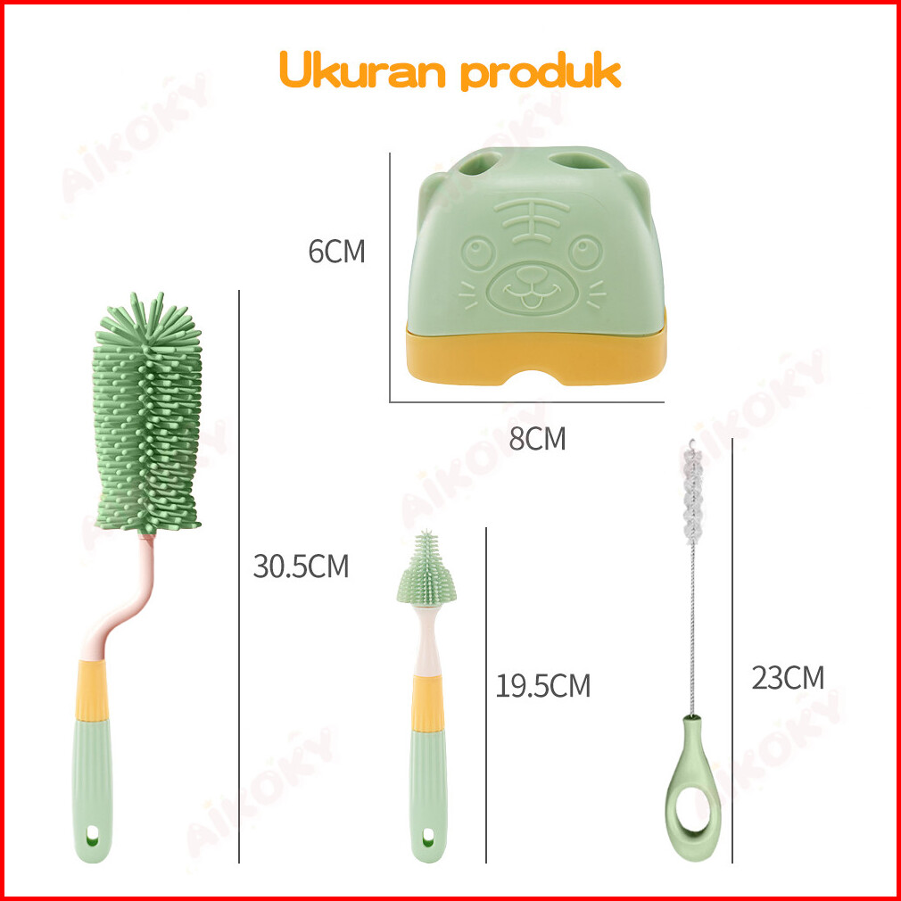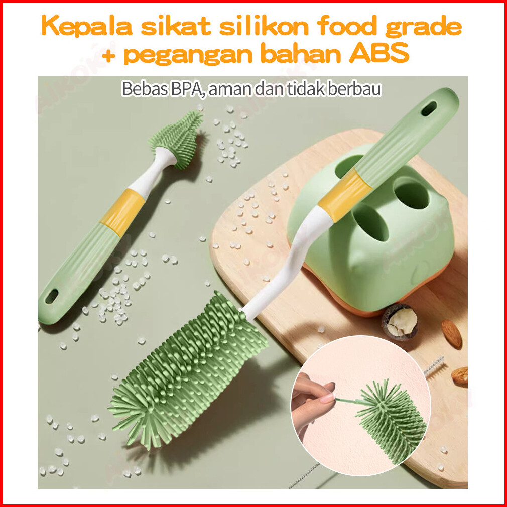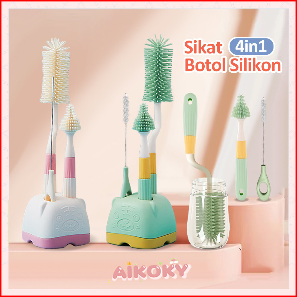 Aikoky Sikat Pembersih Botol Susu Bayi 4 In1 Sikat Dot Silikon Rak Pengering Botol Susu Bayi