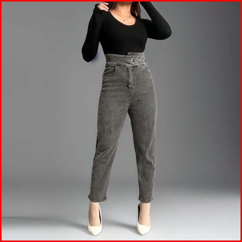 D46 Highwaist Boyfriend Jeans Warna Abu Retro Premium