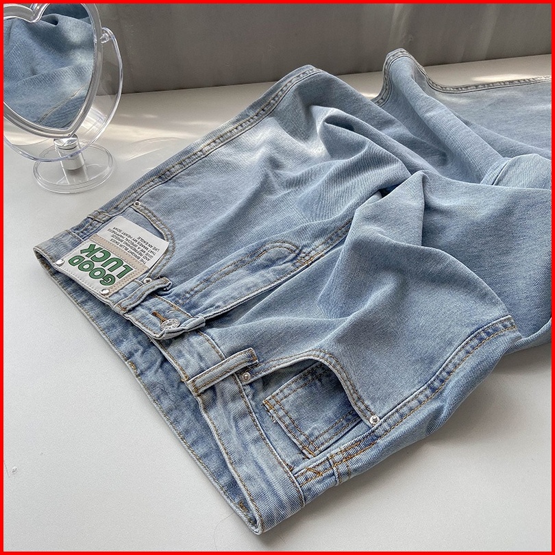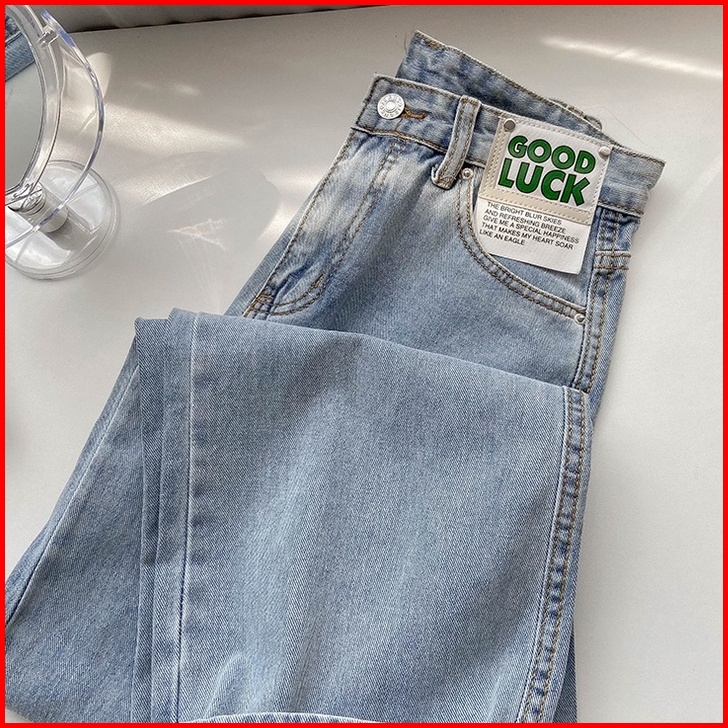 Biru Muda High Waist Kekinian Korean Murah Celana Jeans Panjang Wanita Kulot Import Good Luck