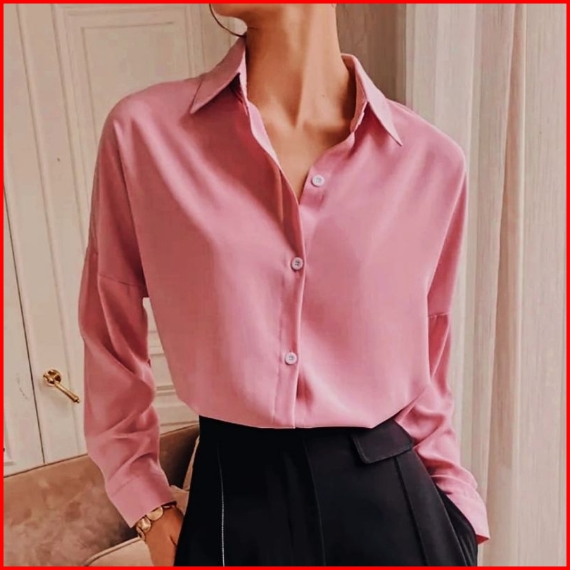 Kemeja Polos Wanita Kasual Kemeja Basic Kemeja Lengan Panjang Cewek Shirt Kemeja