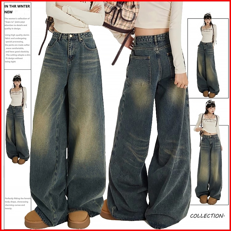 Jumbo Size Baggy Jeans Wanita Pinggang Tinggi Jeans Retro Longgar Korean Celana Panjang Denim