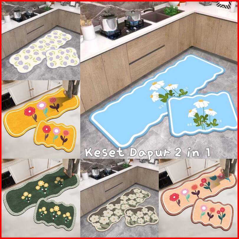 Hl0590 Keset Dapur 2 In 1 Motif Terbaru Anti Slip Dan Menyerap Motif Bunga