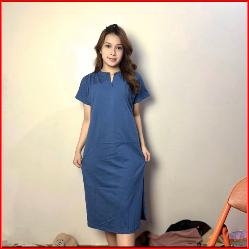 Dress V Neck Loose Midi Belah Samping Terbaru