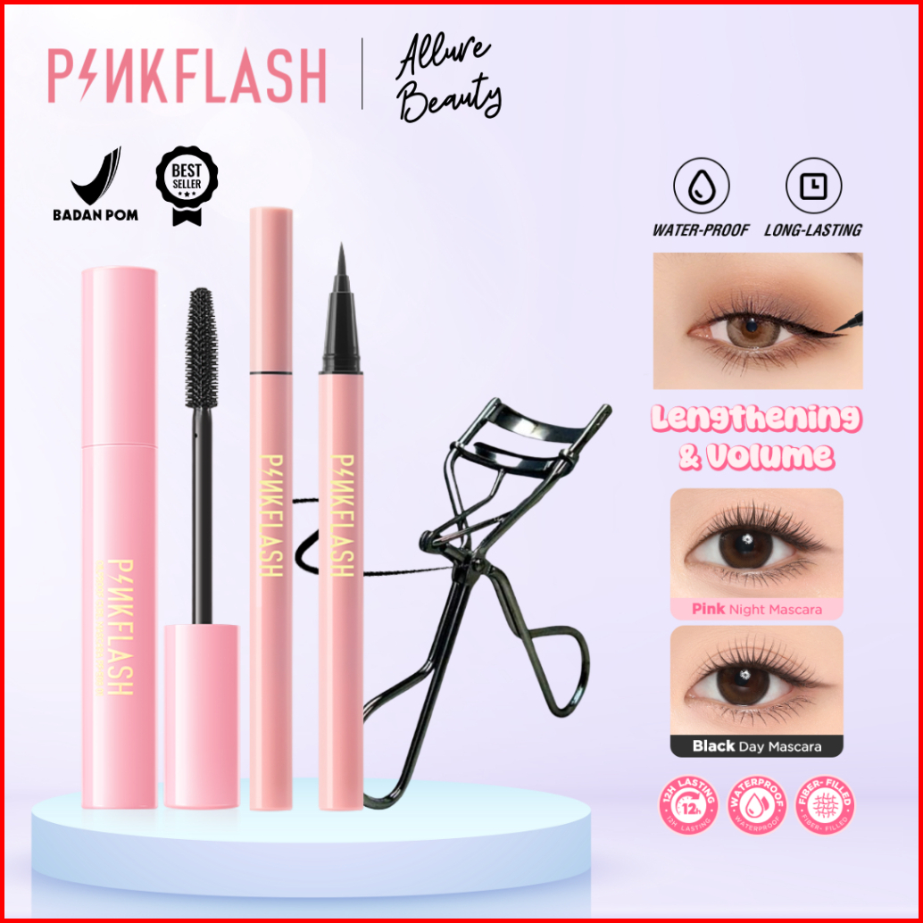 Free Penjepit Bulu Mata Pinkflash 2pcs Eyeset Mascara Liquid Eyeliner Ohmyline 2pcs Bundle Set Brown Volumizing Waterpro