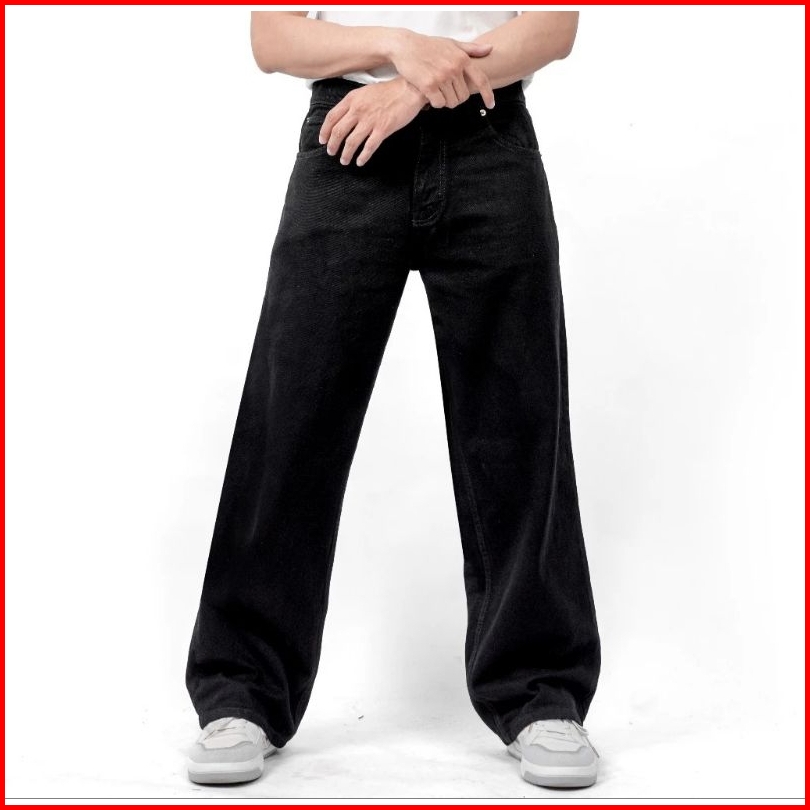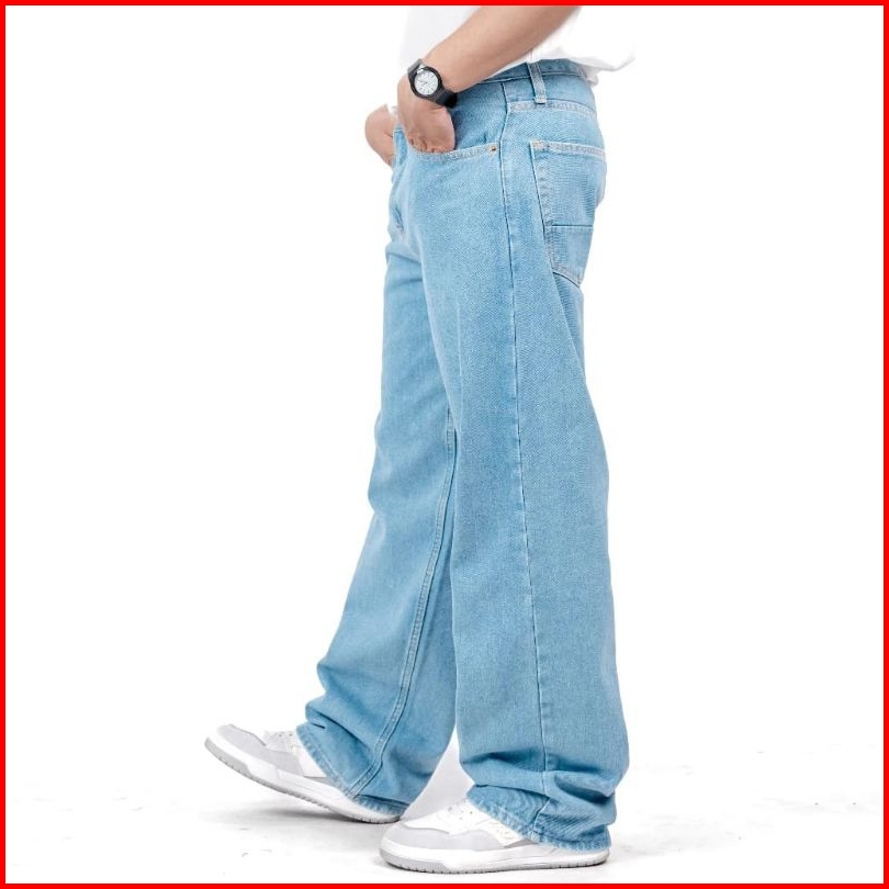 Celana Jeans Pria Baggy Pants Korean Style Oversize Straight Loose Blue Reguler Fit Wide Leg