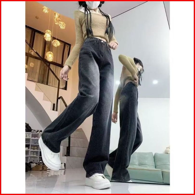 Celana Jeans Retro Wanita Celana Kulot Hightwaist Wanita Loose Terlaris