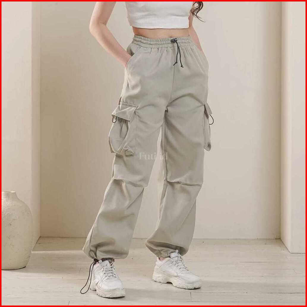 Kiya Cargo Pants Wanita Higwaist Loose Korean Style Jumbo Celana Cargo Wanita Terbaru