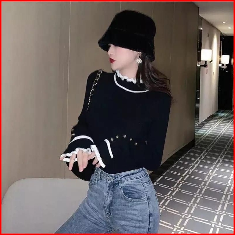 Yansanknit Inner Turtleneck Kriwil Polet Kancing Tangan Baju Rajut Inner Manset Kekinian Atasan Wanita Sweater Cardigan