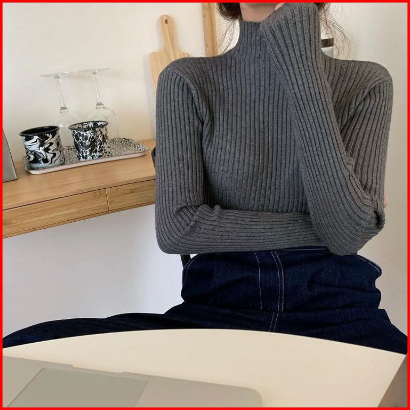 Heygloris - Inner Rajut Lengan Panjang Kerah Tinggi Baju Dalaman Manset