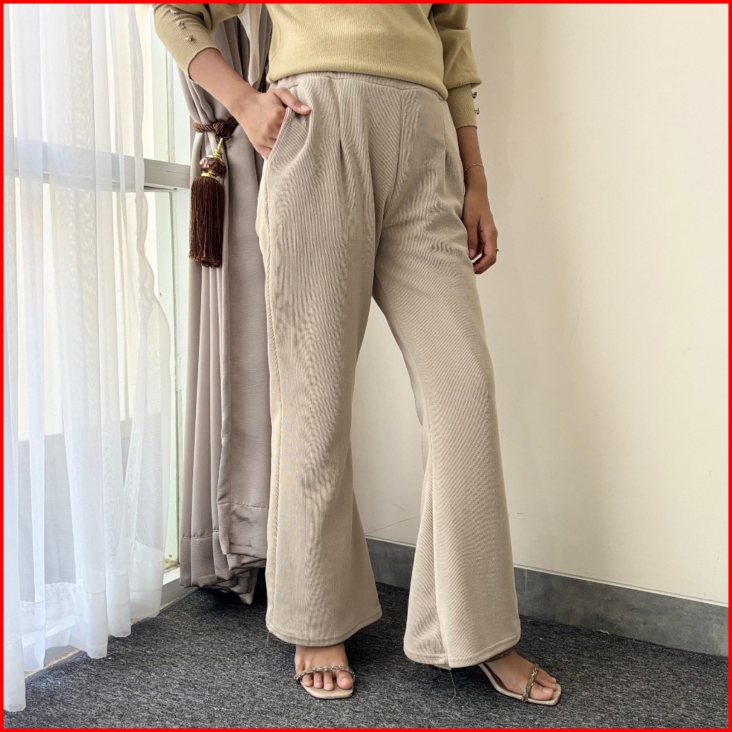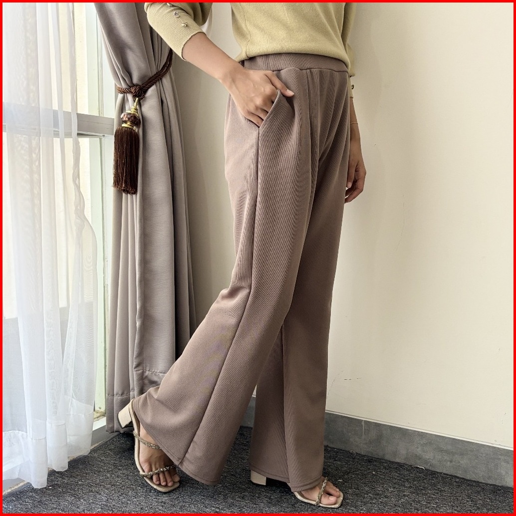 Celana Cutbray Knit Wanita Haighwaist Cutbray Knit Premium Celana Kulot Kekinian Bahan Adem