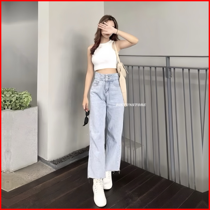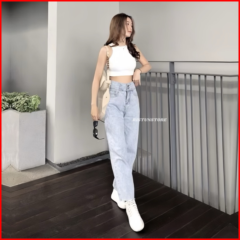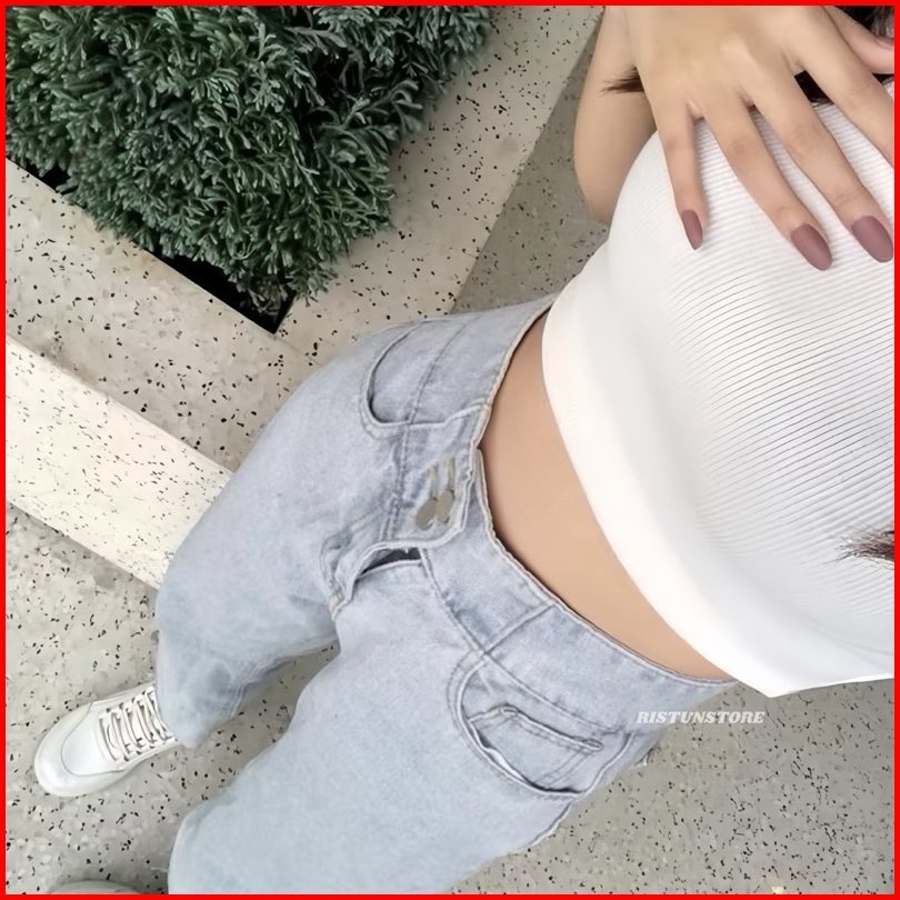 Celana Jeans Wanita Korean Style - High Loose Jeans - Celana Jeans Panjang Wanita