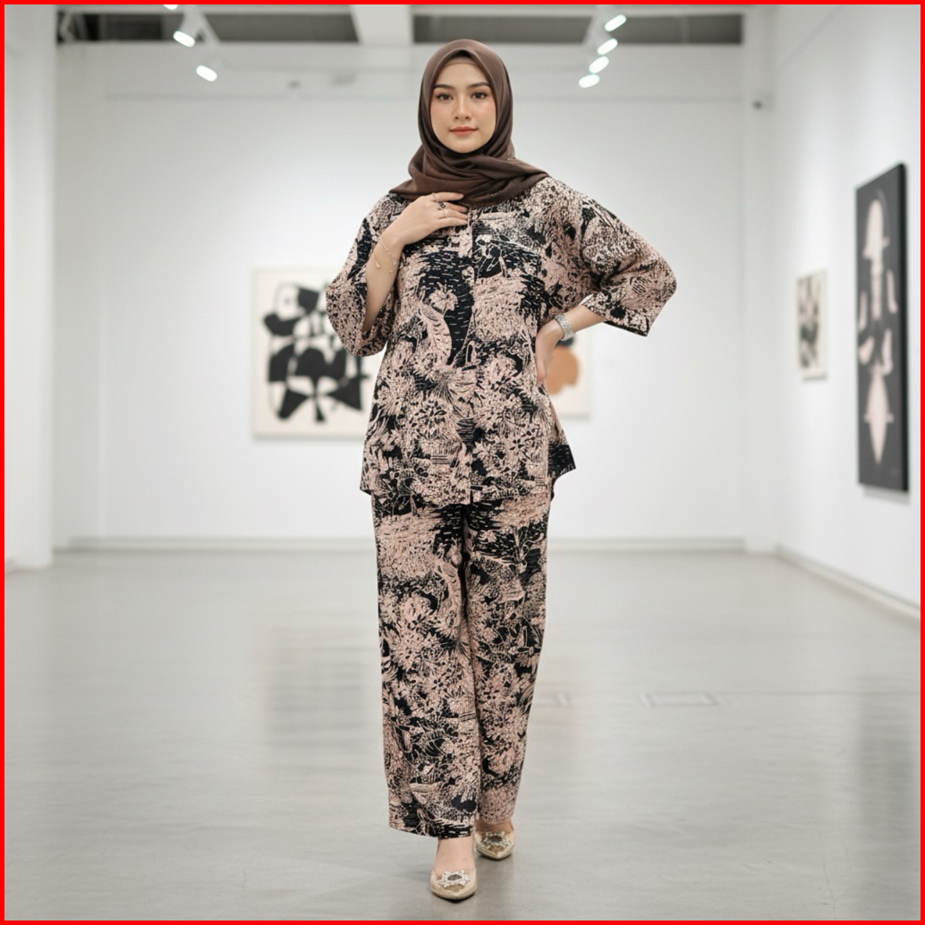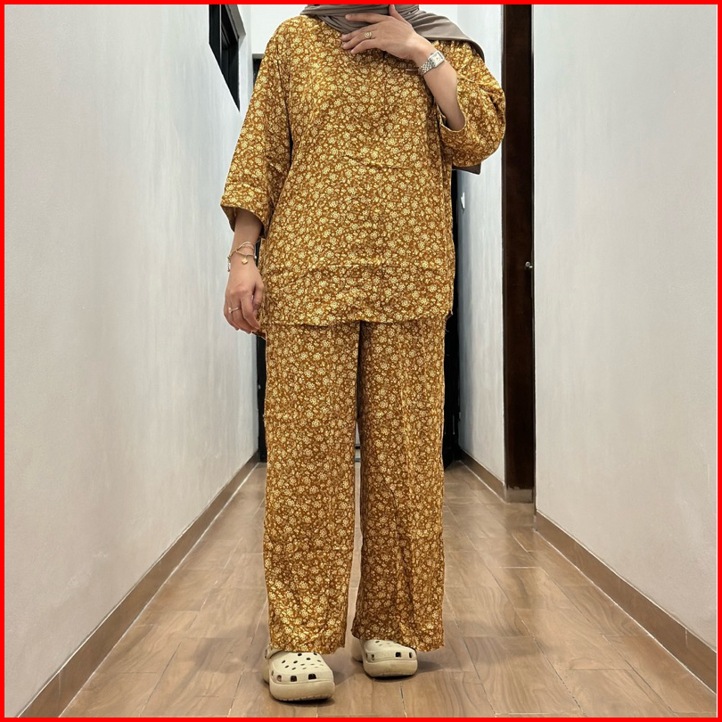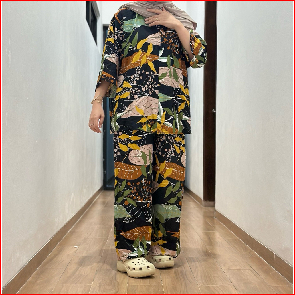 Oneset Piyama Rayon Premium Lengan 3 4 Setelan Rayon Wanita One Set Wanita Kekinian