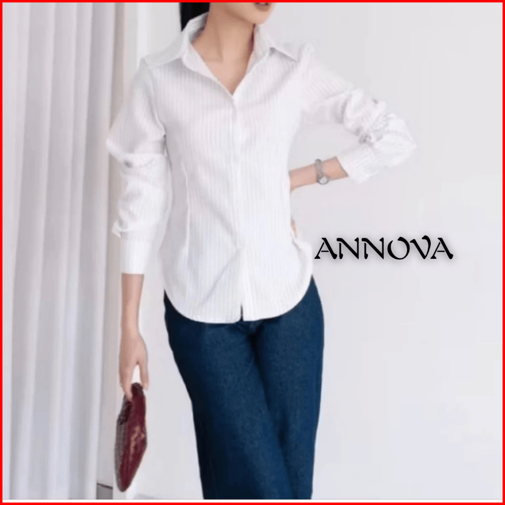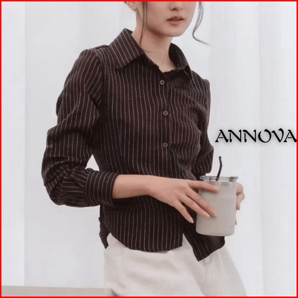 Luna Stripe Kemeja Fitted Wanita Atasan Salur Lengan Panjang Kantor