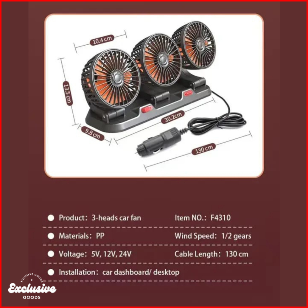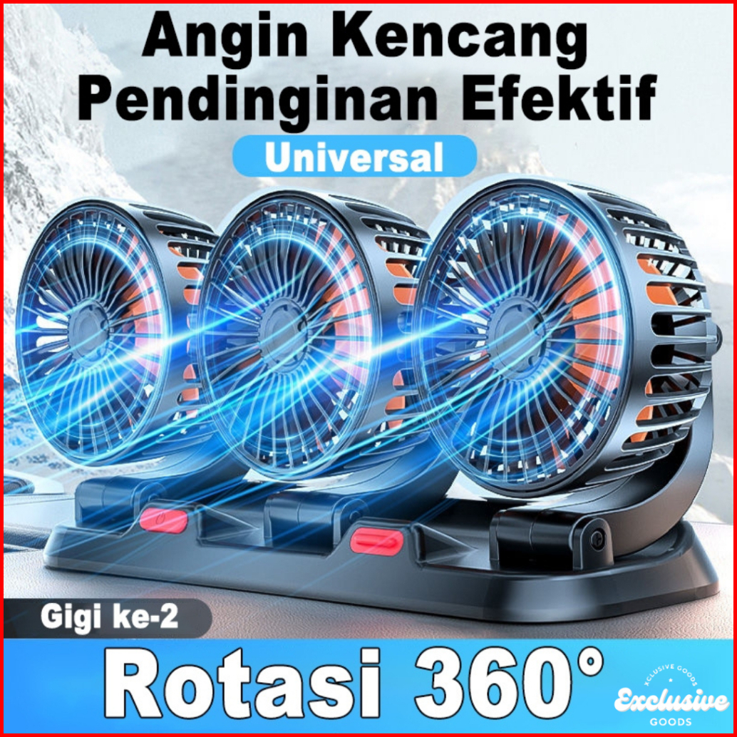 Xgoods Kipas Angin Mobil 3 Kepala 12 24v Kipas Pendingin Truck Usb Dashboard Rotasi 360 Fan Car