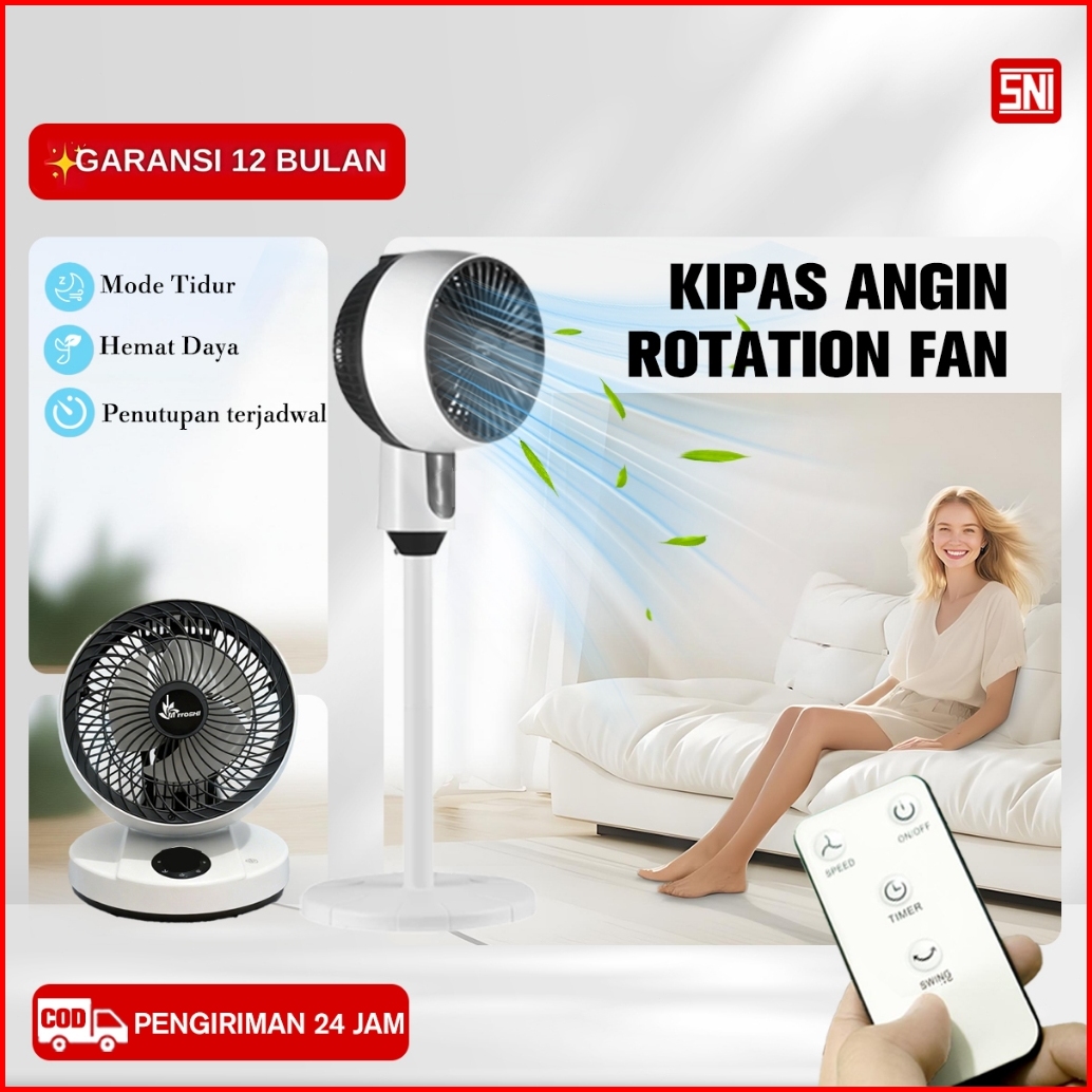 Kipas Angin Remote Control Timer Bisa Rotasi 180 3 Kecepatan Angin Kuat Sunyi Hemat Listrik Fan Low Noise Untuk Tidur Ny