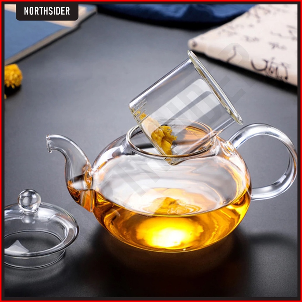 Tea Pot Glass Infuser 400ml Teko Teh Saringan Kaca - Hy400