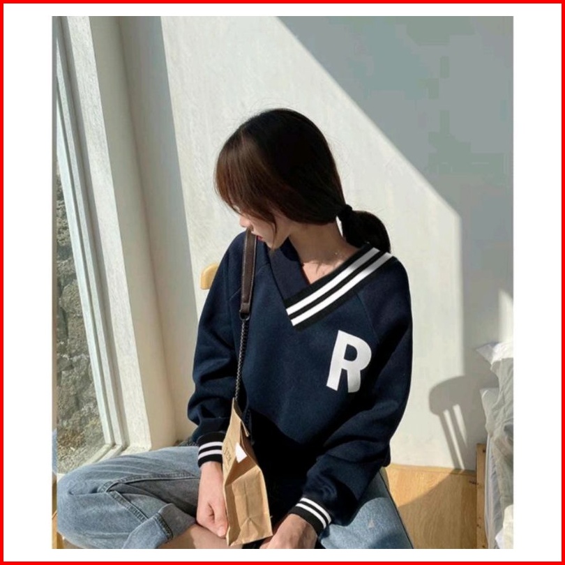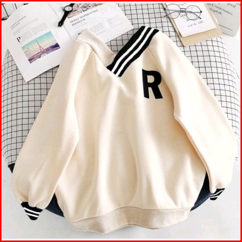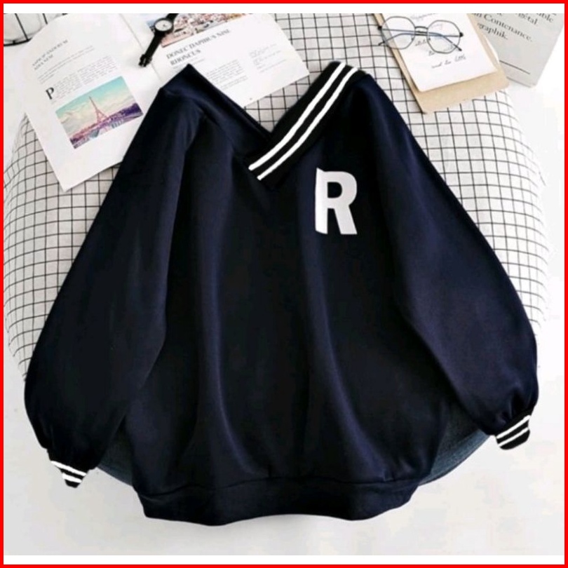 V-neck R Sweater Sabrina Crewneck Wanita Korean Style