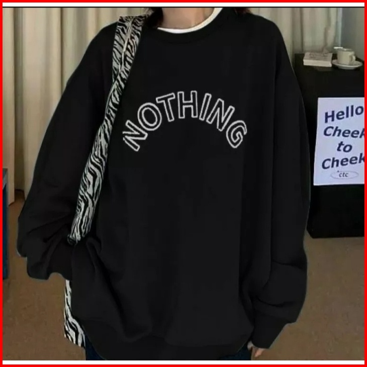 Nothing Text Sweater - Sweater Oblong Oversize Wanita