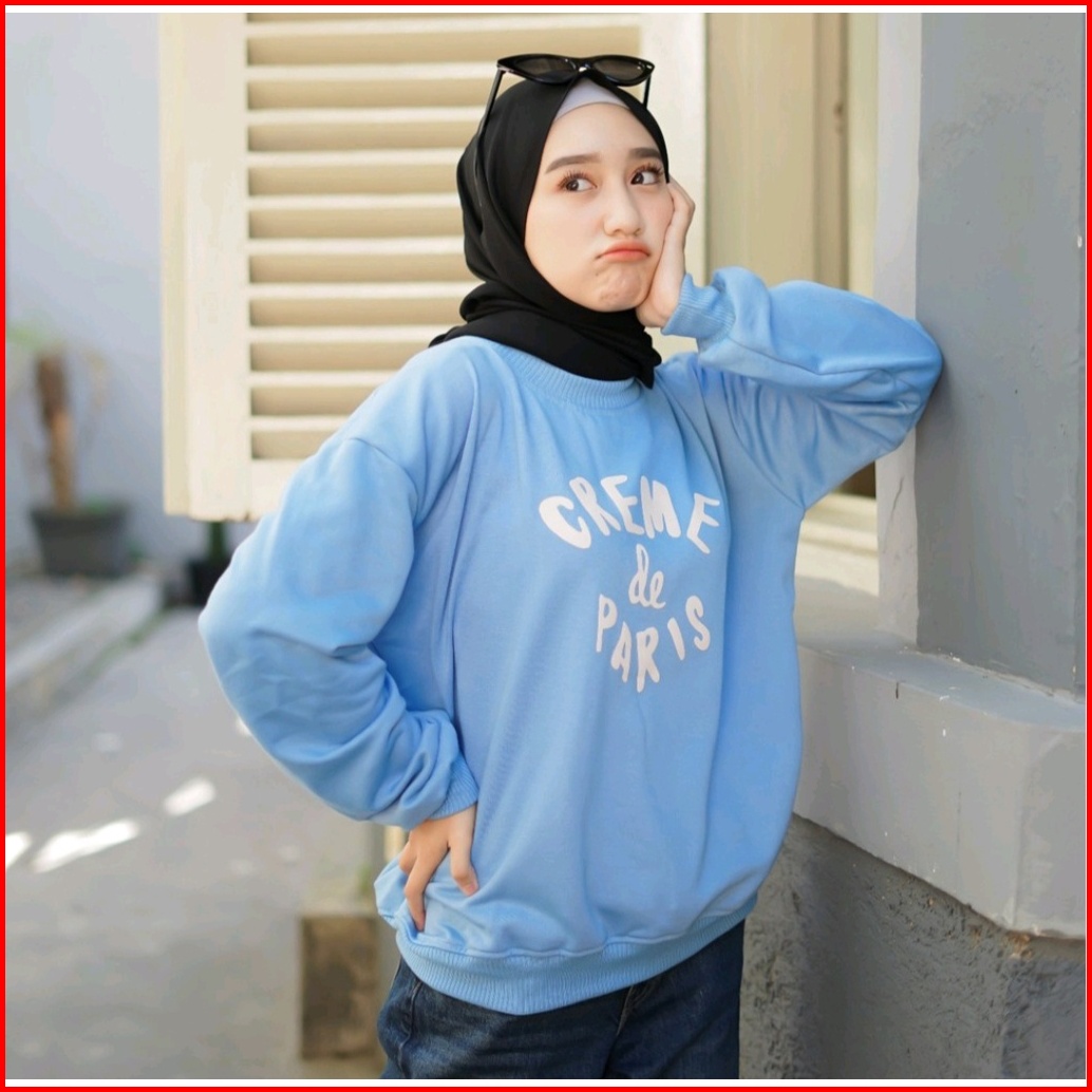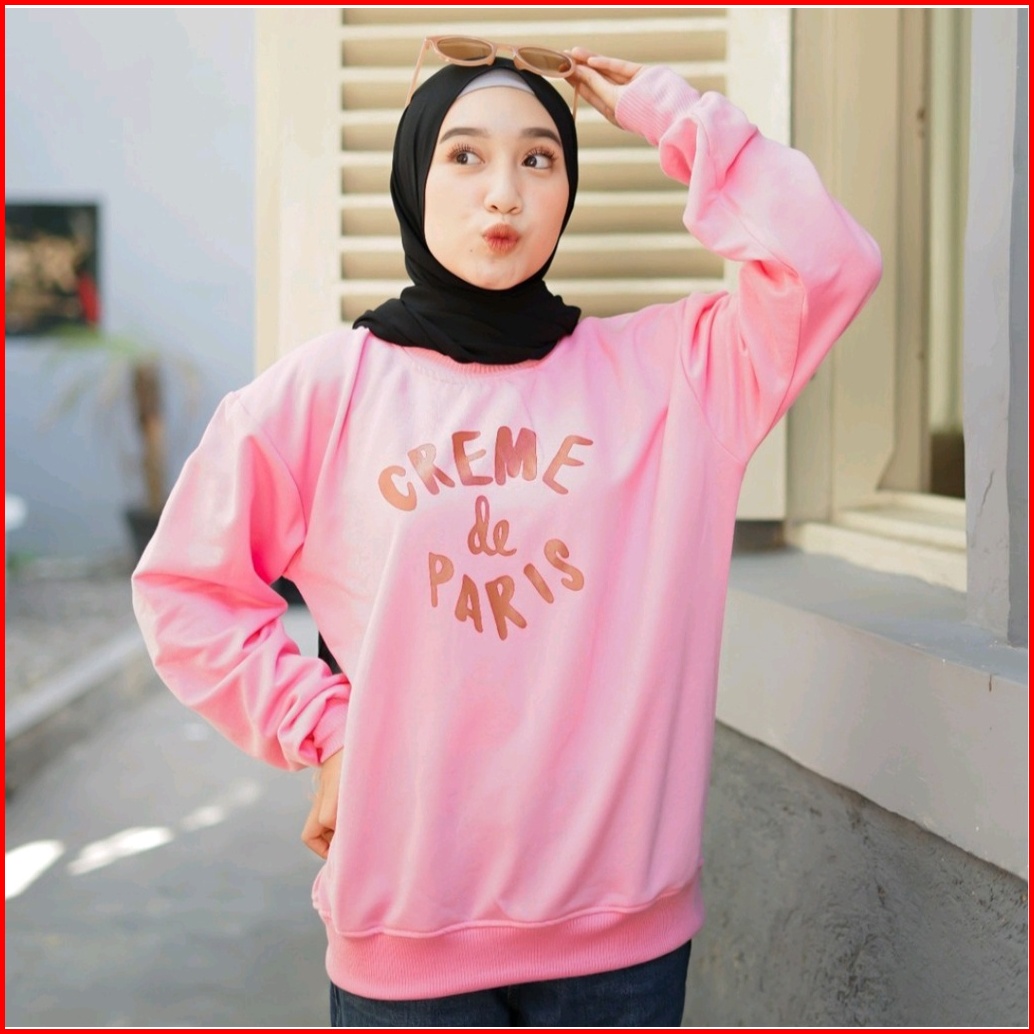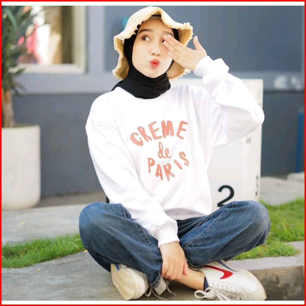 Creme Is Paris Sweater Oblong Crewneck Wanita
