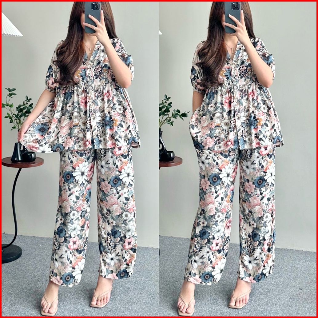 Amariel Sunny Oneset Piyama Rayon Setelan Baju Tidur Bumil Busui Friendly