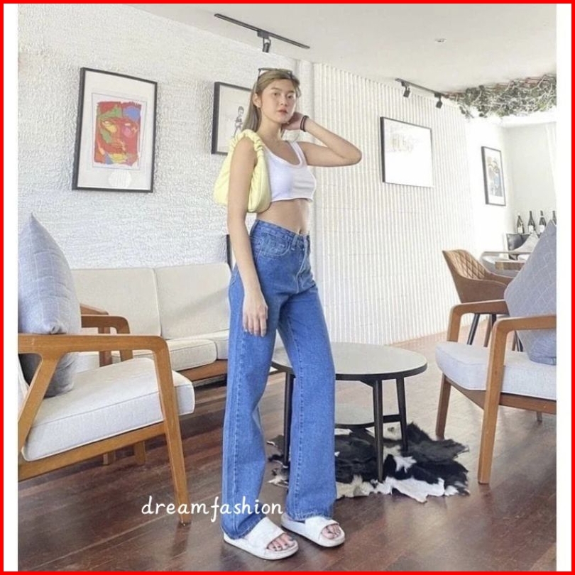 Celana Kulot Jeans Highwaist Loosee Korean Baggy Straight Jeans Kulot Loose Retro