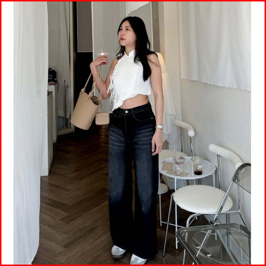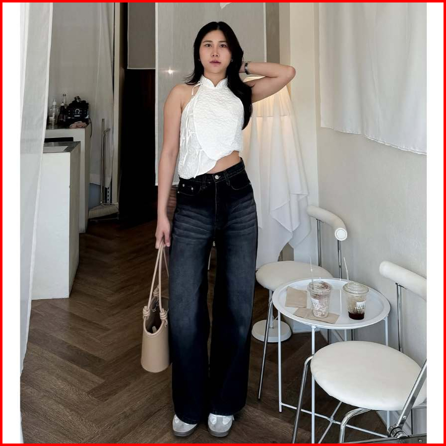 Semi Baggy - Celana Baggy Jeans Wanita Retro Loose Pants Korean Style Panjang 98 - Beggy Jeans Gombrong Oversize Reguler