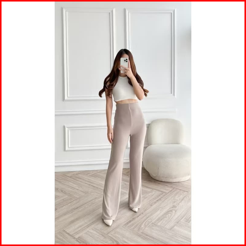 Fx- Celana Cutbray Wanita Basic Bahan Scuba Premium - Fit Flare Celana Kerja Highwaist Jumbo Melar