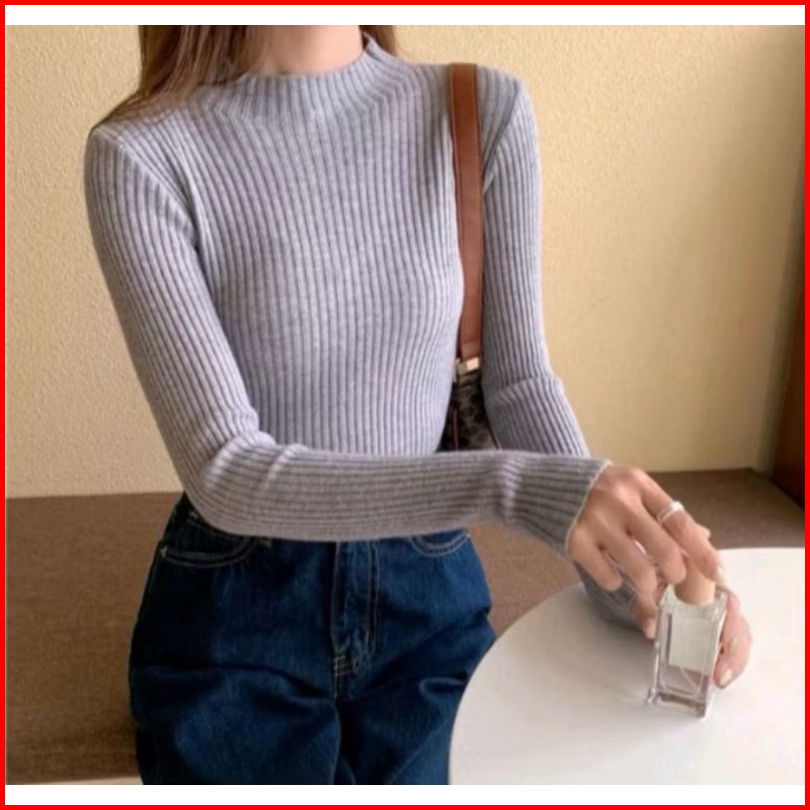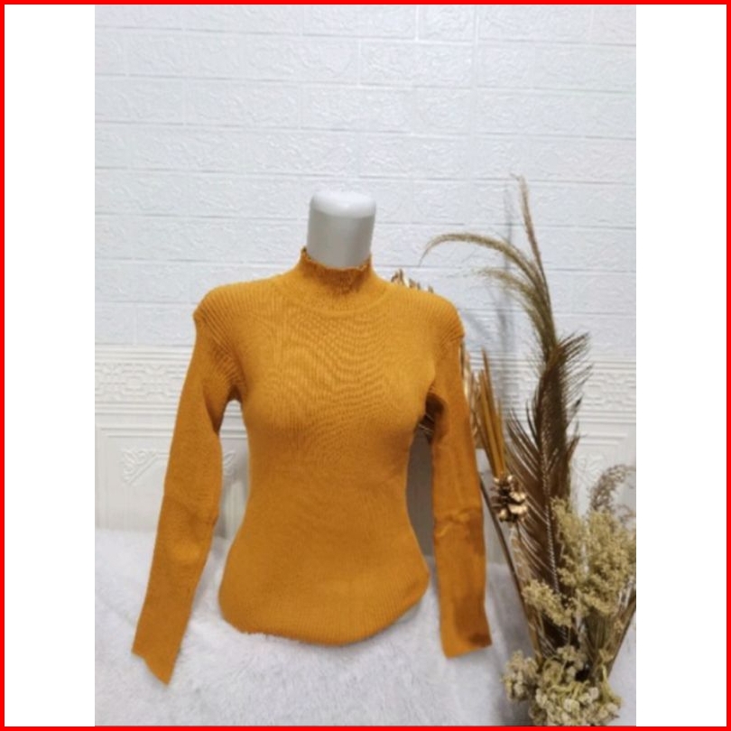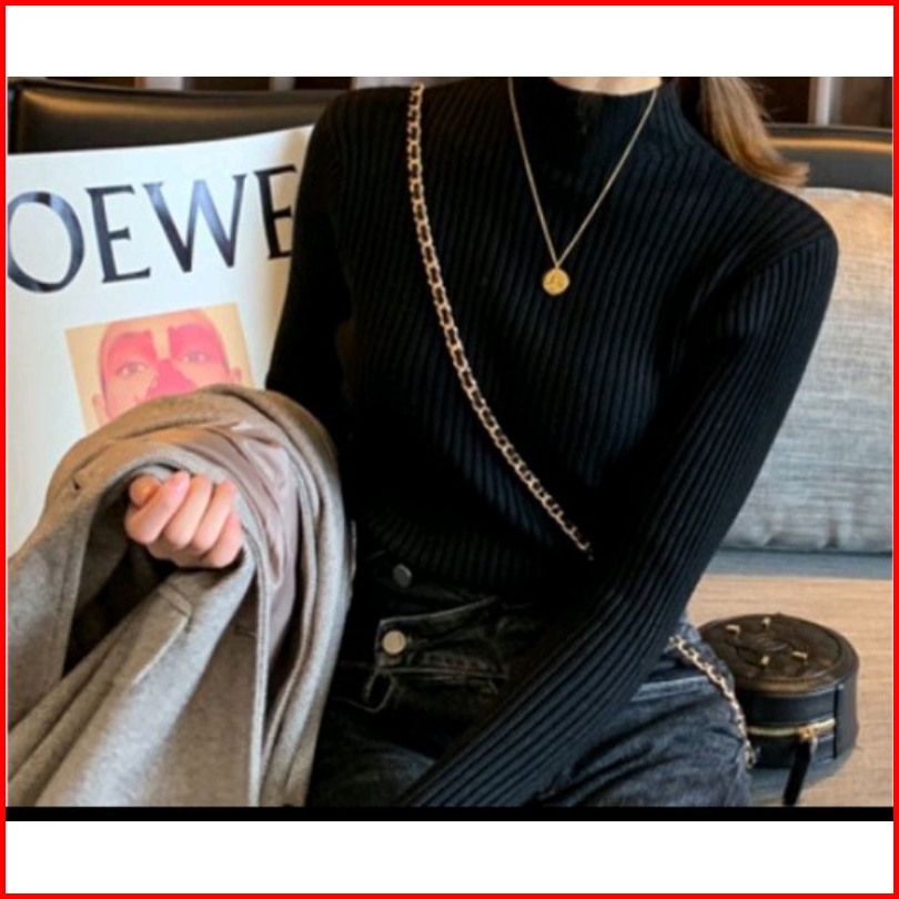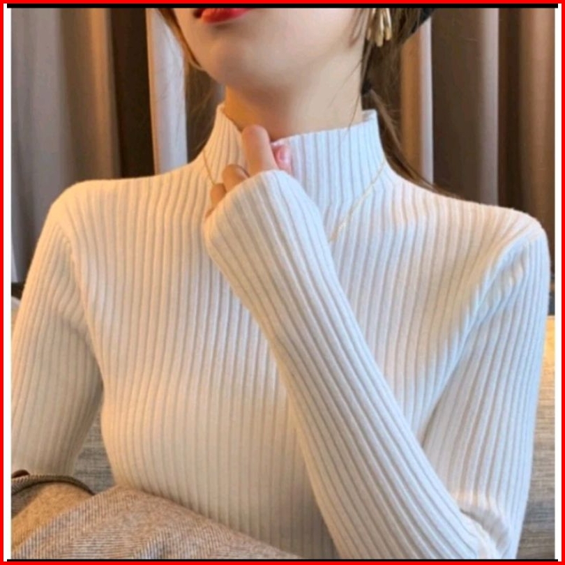 Inner Rajut Aisha Baju Dalaman Turtleneck Knit Manset Lengan Panjang Daysiy Salur