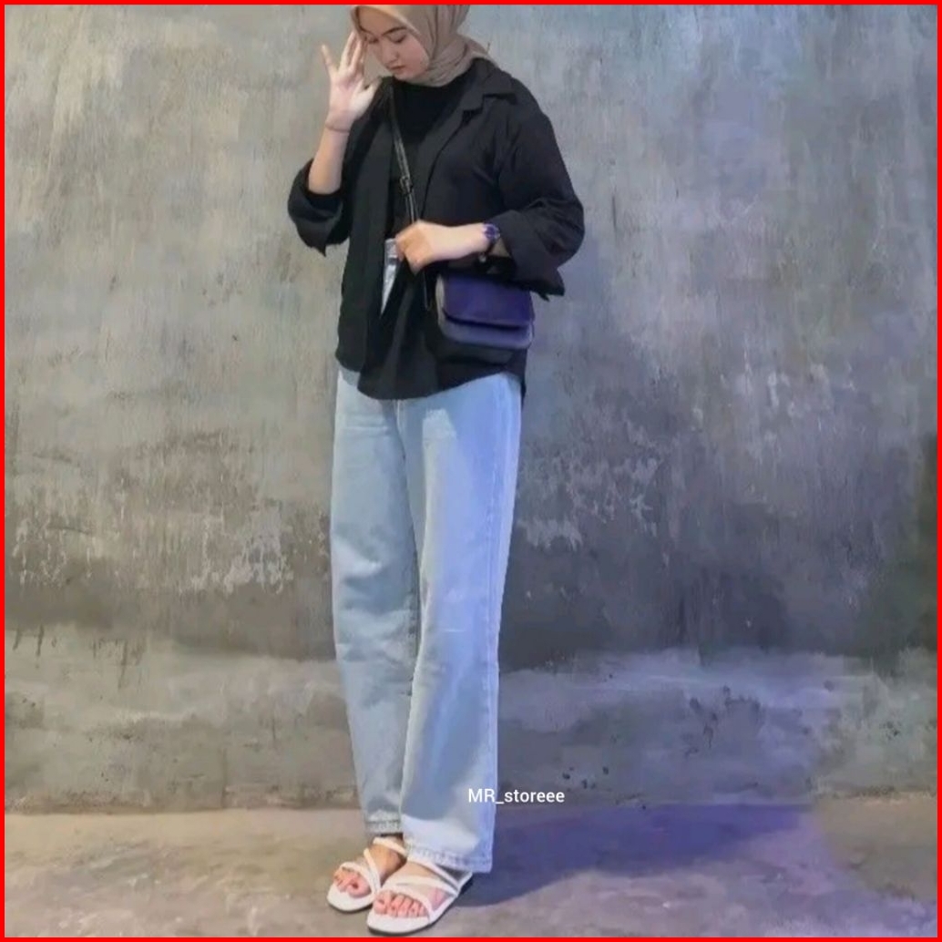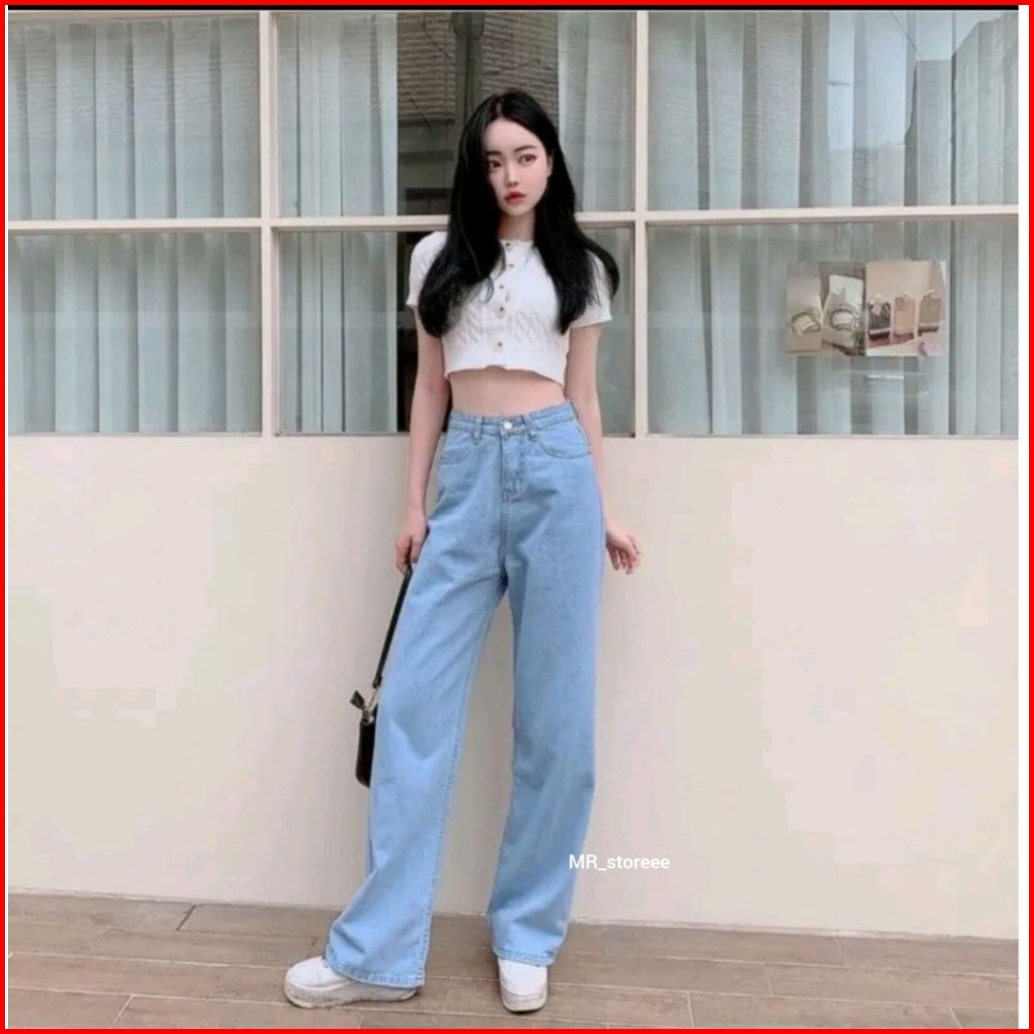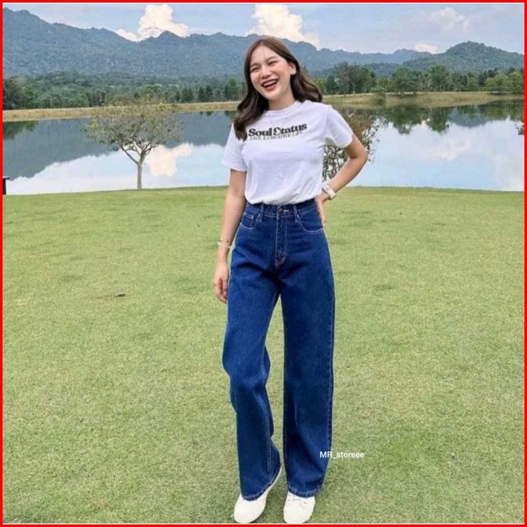 Celana Jeans Wanita Loosee Kekinian Korean Style-highwaist Loosee Jeans Panjang