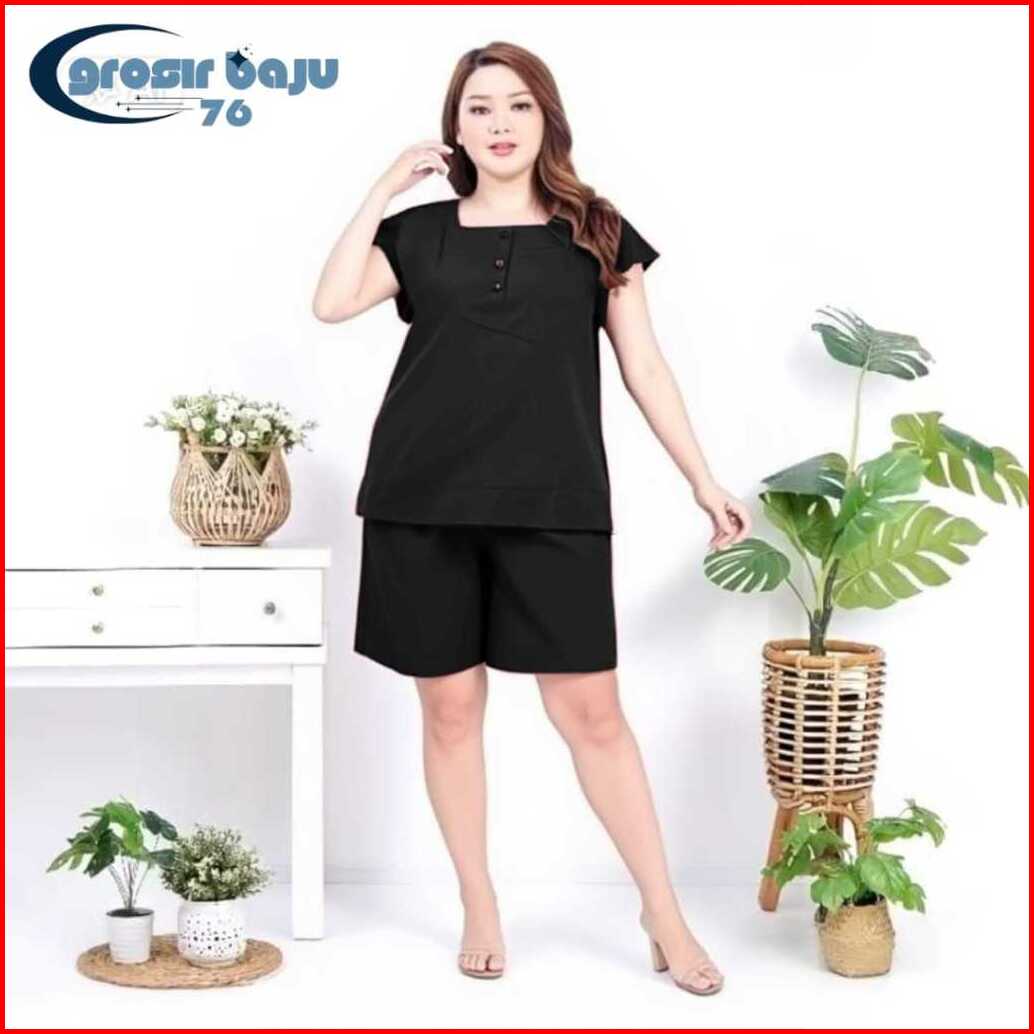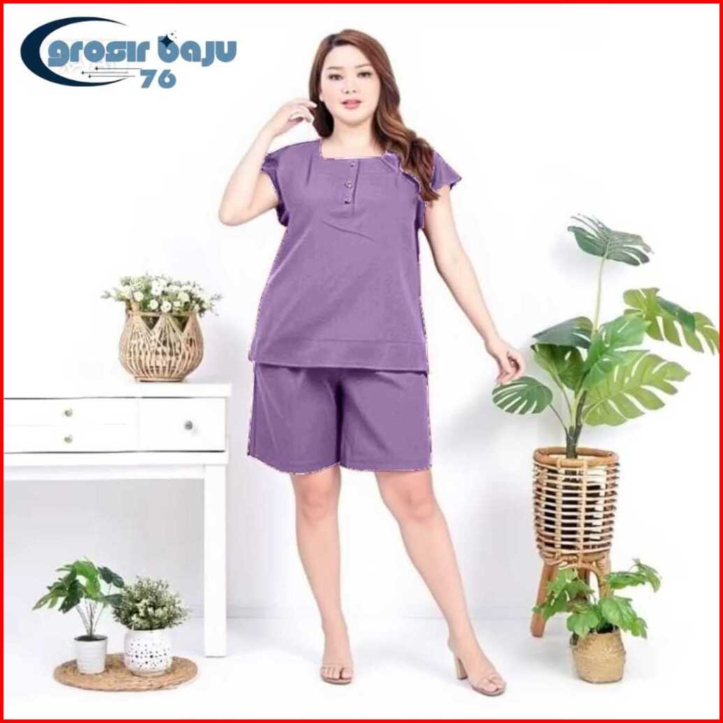 Setelan Model Bangkok Polos Wanita Jumbo Setelan Hotpant Kancing Busui Piyama Baju Tidur