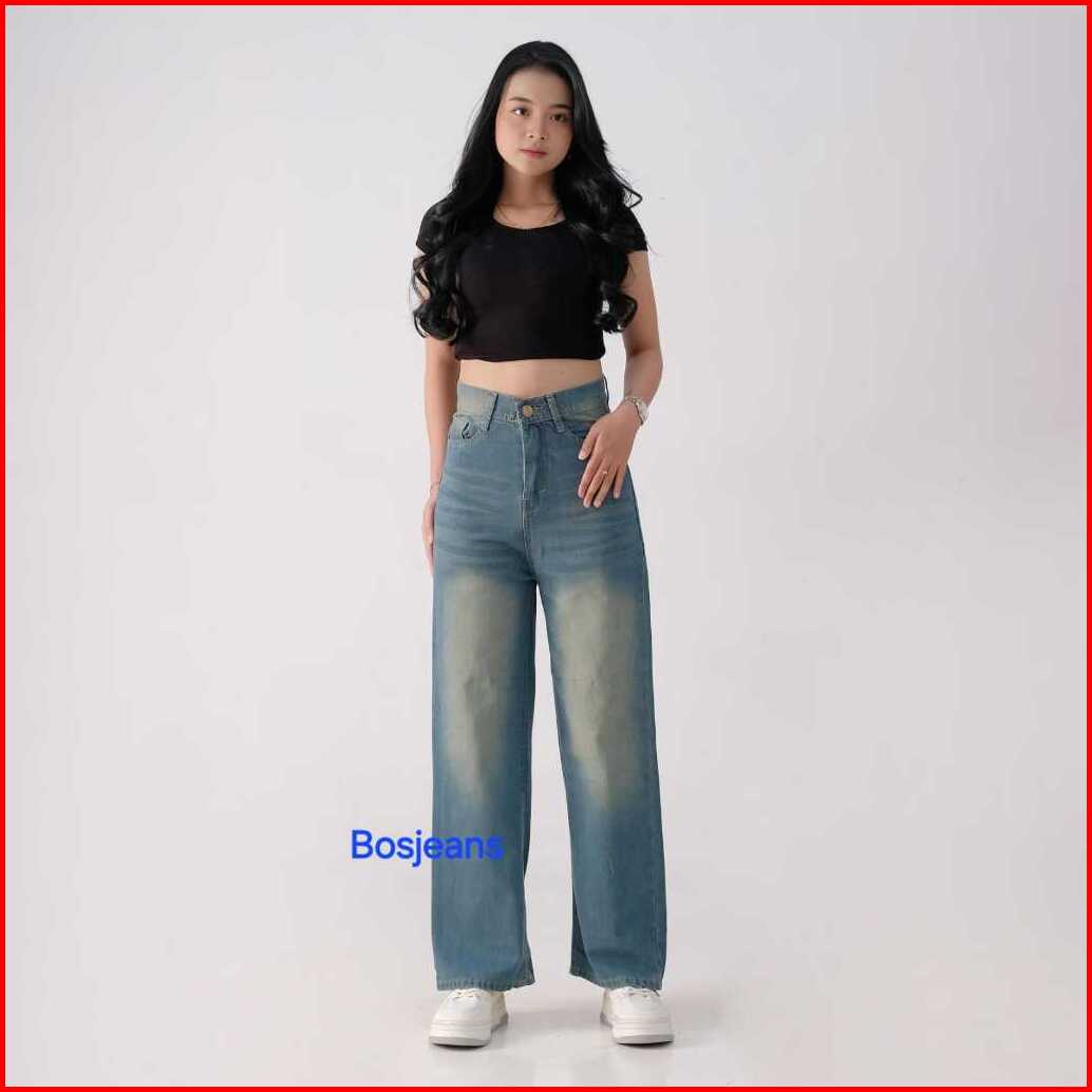 Jeans Baggy Cutbra Retro Biru Jeans Wanita Highwaist Bigsize Celana Jeans Straight Loose