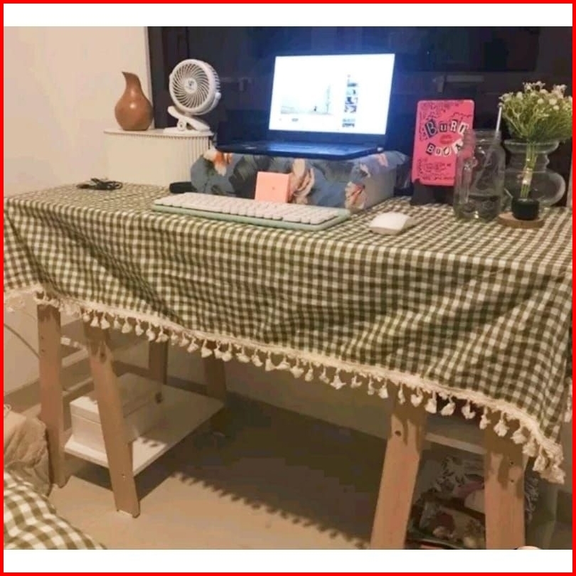 Taplak Meja Makan Motif Kotak Kecil Renda Rumbai 2-4 Kursi