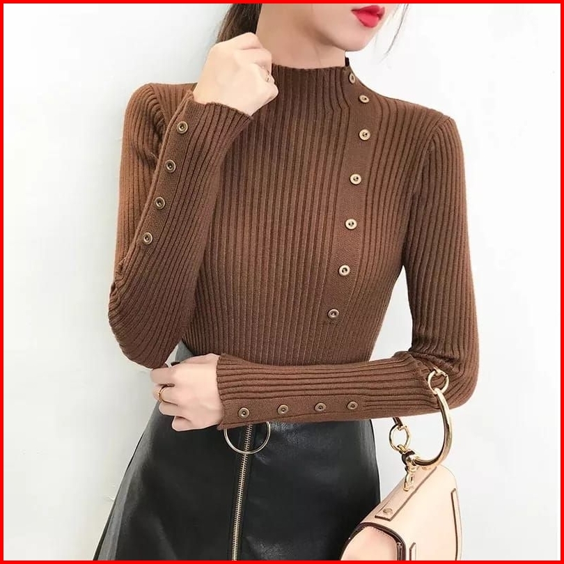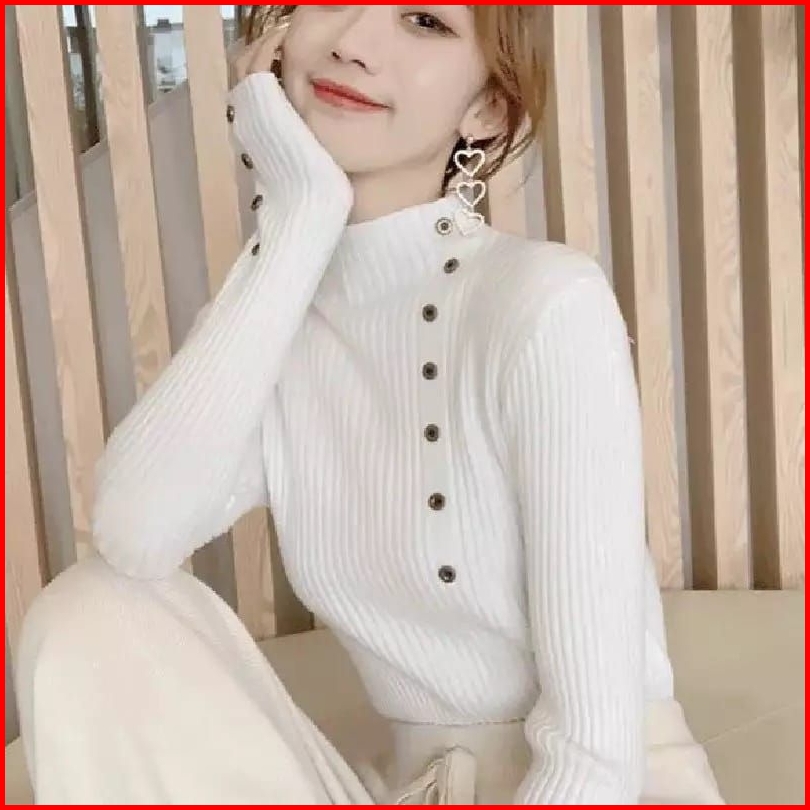 Nukaka Inara Turtleneck Manset Kancing Inner Rajut
