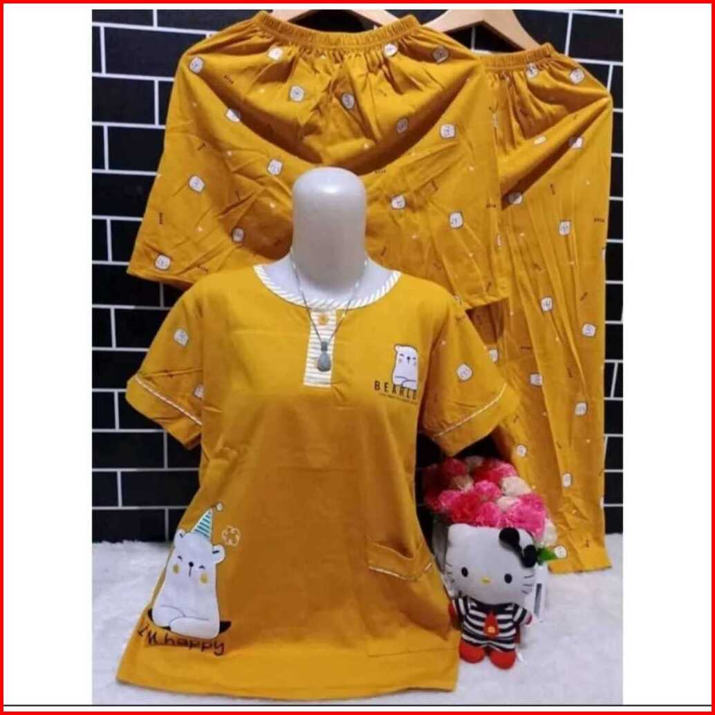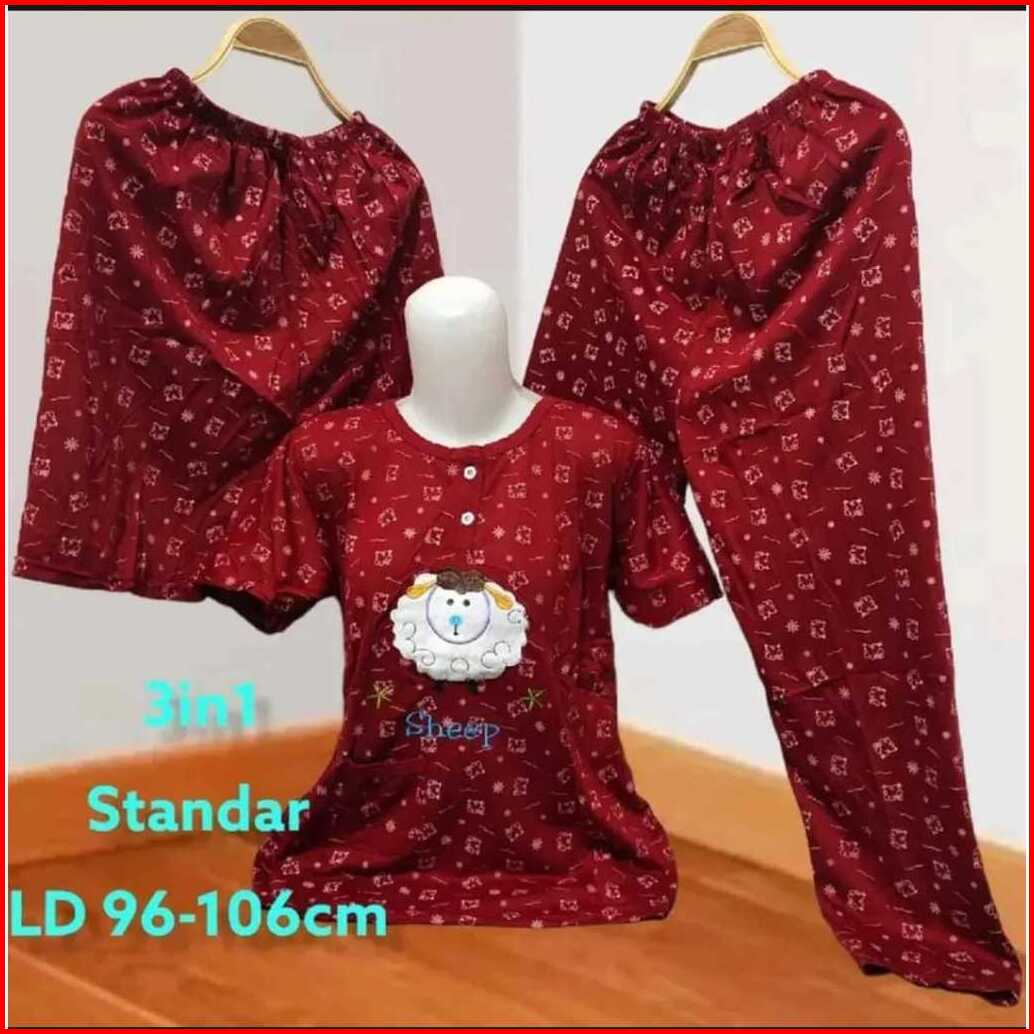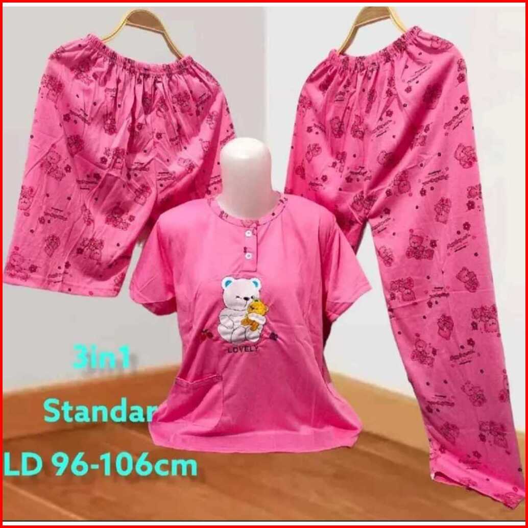 Setelan Baju Tidur 3 In 1 Wanita Dewasa Model Bordir Baju 1 Celana 2 Panjang Dan Pendek