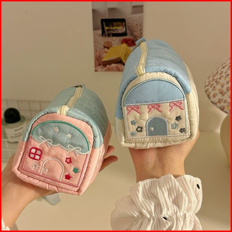 Pencil Case Kotak Pensil Aesthetic Korean Style Kotak Pensil Puffy Premium Tempat Pensil Pita Bentuk Rumah